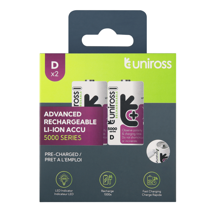 2 Акумулаторни батерии D Li-Ion Uniross 1.5V 5000 mAh + USB Type C